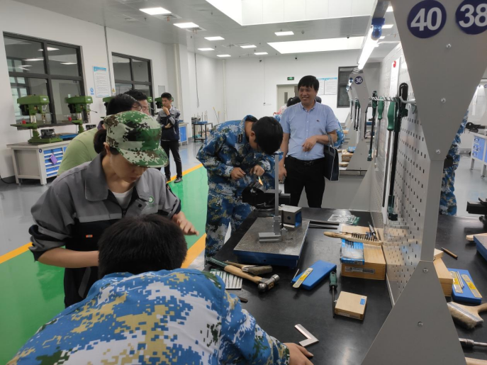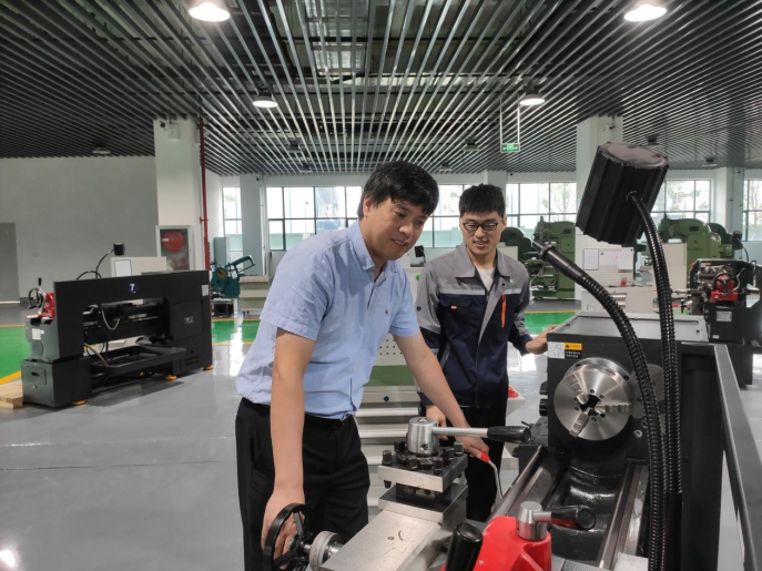 2021年7月16日上午,刚刚上任的实验教学与工程训练中心主任、创新创业学院院长潘泽江教授一行9人来到学校未来城科技园,实地考察了工程训练中心,实验教学与工程训练中心副主任、创新创业学院副院长贺军和杨海健陪同参观了车削实训室、铣削实训室、数控车实训室、加工中心实训室、钳工实训室、焊接实训室、测量实训室、3D打印实训室等8个实训室。潘泽江主任、院长与正在实训的师生亲切交谈,详细了解实训情况,饶有兴致的与师生互动及动手参与。