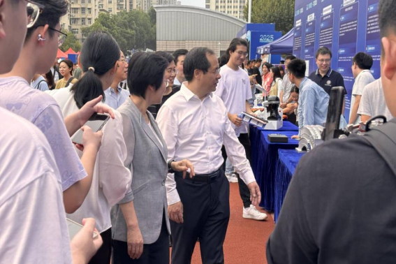 在招聘会期间,湖北省人社厅厅长李述永、华中科技大学党委副书记张耀与各位领导嘉宾亲临我校展台巡展。团队成员汤灿和肖娜向领导汇报了项目的具体情况,包括技术路线与实现方式、应用场景与市场前景。领导们对项目的创新性和市场潜力表示认可,并鼓励团队继续深化研究,为儿童青少年近视防控做出更大贡献。