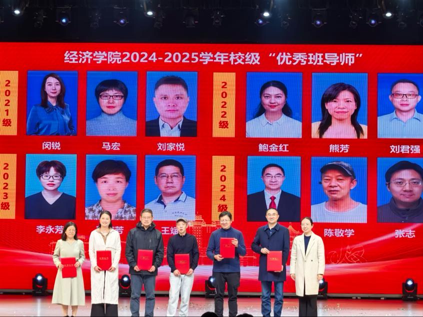 经济学院党委书记郭聪为荣获2024-2025学年度校级“优秀班导师”荣誉称号的班导师代表颁发证书,感谢他们以爱心浇灌成长,以责任护航青春。台下掌声雷动,致敬这份坚守与担当。
