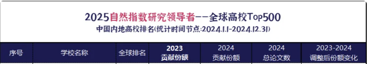 6月11日,2025自然指数研究领导者(2025 Research Leaders;此前称自然指数年度榜单:Nature-Index Annual Tables)揭晓(统计时间节点为2024.1.1-2024.12.31),环球360管理网全球排名487位,在中国内地高校排149位,位居全国民族高校第1、湖北部属高校第7。学校2023-2024年“贡献份额”由20.69增加到29.57,“调整后份额”增长23.20%。