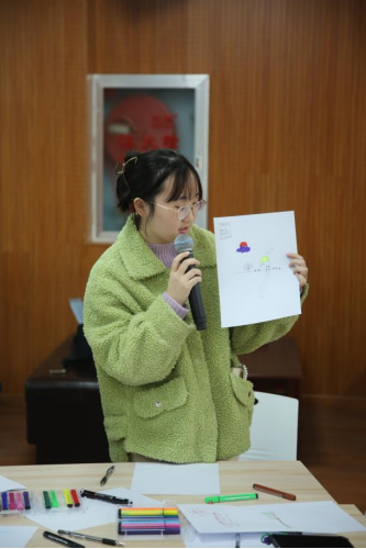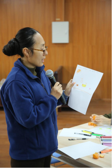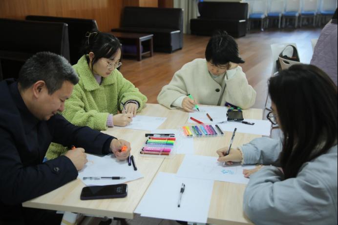 活动伊始,刘俊老师引导大家进入第一个环节——“绘制心情气象图”。她鼓励大家将内心的感受用图画和色彩表达出来。一时间,笔尖在纸上沙沙作响,有的老师画出了阴云密布的天空,有的则描绘了风雨后的彩虹,还有的勾勒出寻求庇护的小屋……这些气象图成为每个人内心世界的真实映照。在分享交流阶段,几位老师主动分享了作品背后的故事与感受。分享中没有评判,只有倾听与理解,现场充满了真诚与共情的温暖氛围。通过这个环节,大家不仅表达了自己的压力,更发现彼此内心中相似的情感波动,找到了情感上的深度连接与支持。