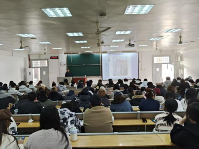 随后,在专题辅导环节,海文考研机构丁老师围绕“是否考研”“如何定目标院校与专业”及“现阶段如何复习”三个核心问题展开讲解。他建议同学们立足长远职业目标,优先考虑本专业或相近专业,结合个人兴趣与家庭资源明确就业方向;在院校选择上需要综合权衡地域、层级与录取分数线进行精准定位;在备考阶段应注重科目适配性,通过基础检测识别薄弱环节,制定个性化的提升计划。