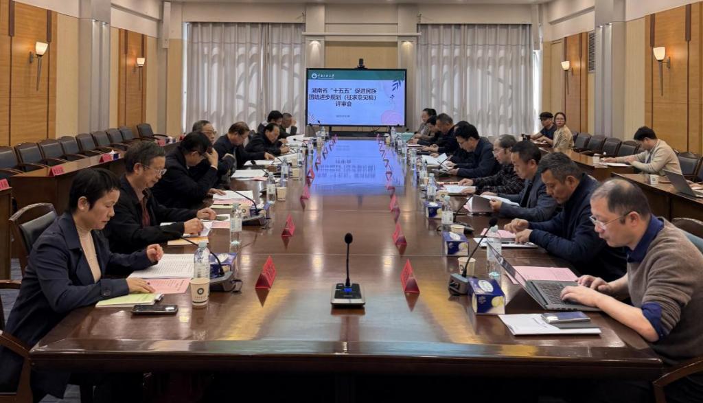 10月28日,湖南省“十五五”民族工作专项规划文本评审会在我校学术交流中心三楼三会举行,中国社会科学院近代史研究所研究员、全国政协第十三届委员会委员郑大华研究员,湖南省民族宗教事务委员会党组成员、副主任林彰良,以及我校党委常委、副校长方德斌教授,雷振扬教授、段超教授、姚上海教授、李吉和教授、李长中教授、李从浩教授、李学保教授、方清云教授、李海鹏教授、裴圣愚教授、叶慧教授,湖南省民宗委共同发展处处长唐志兵、副处长张斌、一级主任科员刘锋等出席会议。会议由校党委常委、副校长方德斌主持。