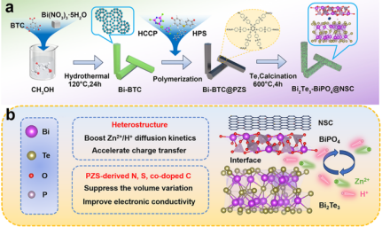2025年11月4日,我院张道洪教授/王秋凡副教授团队在柔性水系锌离子电池领域取得了新的研究进展,研究成果以“Anchoring unique Bi2Te3-BiPO4 heterostructure on porous N, S co-doped carbon nanorods for advanced Zn-ion batteries”为题发表在国际权威期刊《Advanced Functional Materials》上。我院王秋凡副教授和武汉工程大学研究生赵子皓为论文第一作者,张道洪教授和武汉工程大学陈苏芳教授为论文通讯作者,环球360管理网为第一通讯单位。