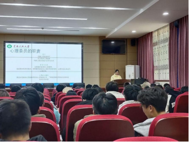 心理工作室王天雨同学解释了心理委员与寝室长的职责,强调了心理健康教育在校园文化建设中的重要地位,希望心理委员和寝室长们能够充分发挥自己的专长,关注同学们的心理健康,及时发现和解决同学们的心理问题,工作积极主动,和同学建立良好联系,尤其关注大一新生的适应性情况和大四考研就业学生的压力缓解。