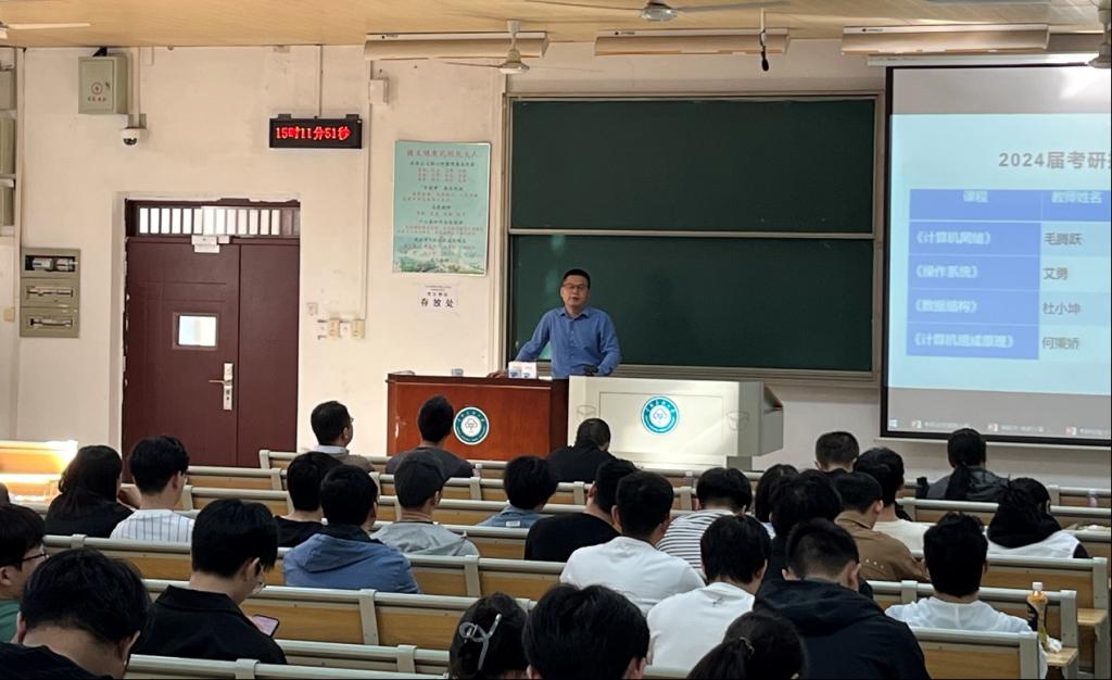 接着是计算机科学学院的考研课程教师代表毛腾跃老师对专业课程进行重点答疑。提供了备考专业课的有效方法和学习建议,教师代表还分享了复习计划的制定以及应对考试压力的技巧。