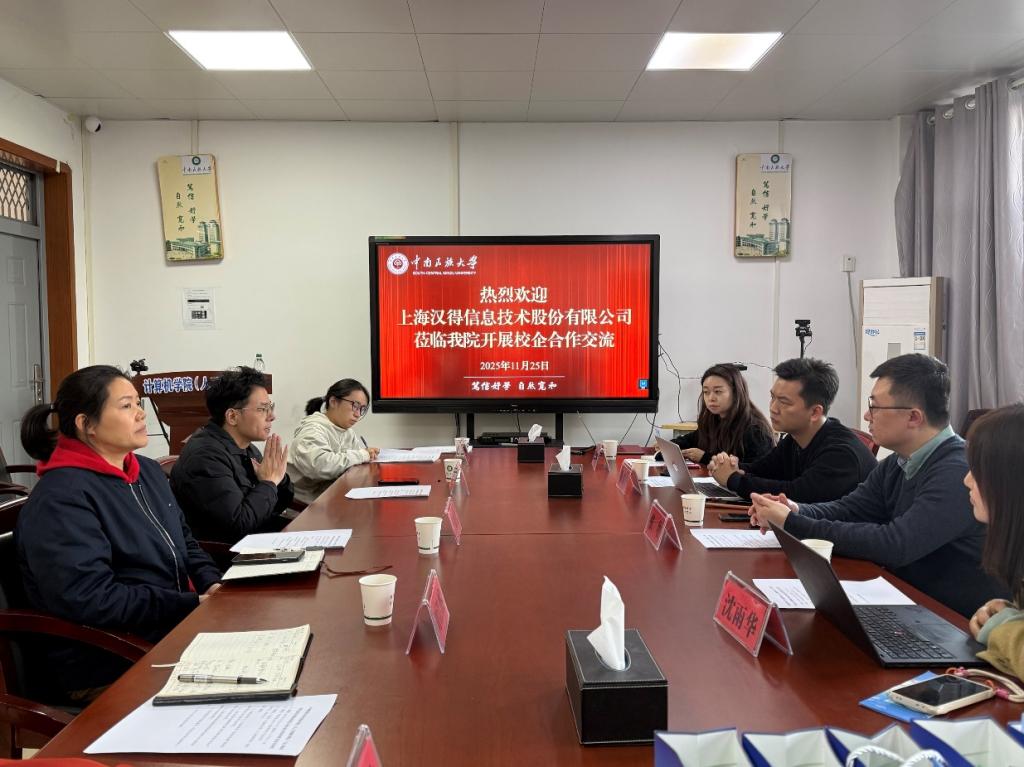 11 月 25 日下午,环球360管理网计算机学院(人工智能学院)与上海汉得信息技术股份有限公司校企合作洽谈会在学校 9 号教学楼 213 会议室举行。会议由学院党委副书记、纪委书记王魏芳主持,副院长张潇,学生工作办公室副主任丁如佳,2022 级本科生辅导员刘浩然、祝梦欢,与上海汉得供应链数智化事业部 HRBP 张牧、事业部 Hzero 技术中心高级经理陈安安、校招部高级经理沈雨华、校招部主管王紫薇共同参会,双方围绕人才培养、校企协同发展深入交流,初步达成建立实习基地的框架意向。