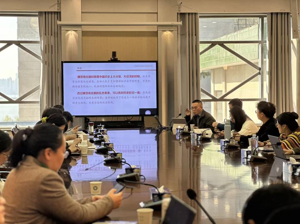 崔榕教授聚焦《中华民族共同体概论》教材第六讲内容“五胡入华与中华民族大交融”,系统阐述了魏晋南北朝时期北方匈奴、鲜卑、羯、氐、羌“五胡”族群进入中原并建立政权的历史过程,并阐释了“五胡”主动“中华化”对中华民族共同体形成的深远影响。他指出,“五胡”政权虽处于乱世,却积极追求“中华正统”,通过采鉴“中华”政制,推行儒家文化,实施均田制、三长制、府兵制等改革创新,实现了从游牧社会向农耕定居的转型。崔榕教授认为魏晋南北朝时期,正是各族群共同书写“你中有我、我中有你”的中华民族共同体的重要阶段,它为隋唐更大规模的统一乃至中华民族共同体更大规模的发展打下了坚实基础,巩固了中华民族多元一体的基本格局并塑造了“华夷一统”的政治传统。
