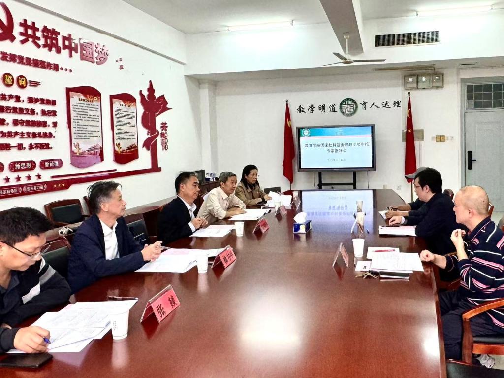为切实提升国家社科基金思政专项申报质量,推动学院科研工作与学科建设内涵式发展,2025年10月16日下午,教育学院于15号楼727会议室组织召开国家社科基金思政专项专家指导会。会议特邀武汉大学袁银传教授、张乾元教授,湖北大学徐方平教授,华中科技大学董慧教授、张燚教授五位国内思想政治教育领域知名专家莅临指导,为学院教师申报课题把脉问诊、传经送宝。