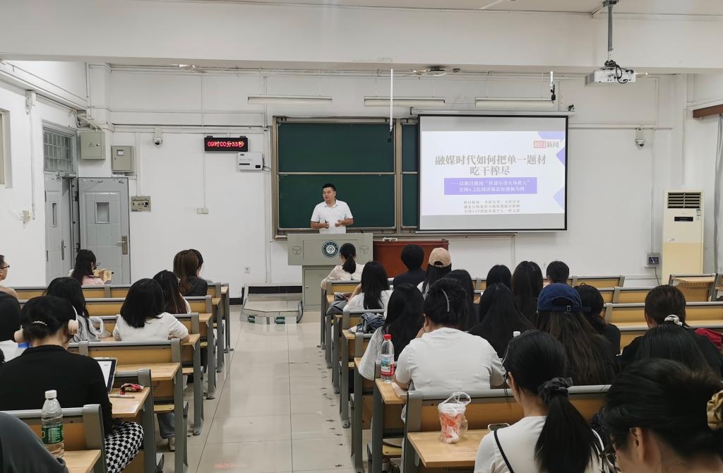 本站讯(通讯员:章思雨 摄影:章思雨)10月11日上午,学院邀请楚天都市报·极目新闻首席记者、主任记者叶文波在15号教学楼120教室做《如何把单一题材“吃干榨尽”》的讲座。讲座由何国梅副教授主持,学院部分本科生及硕士生参加。