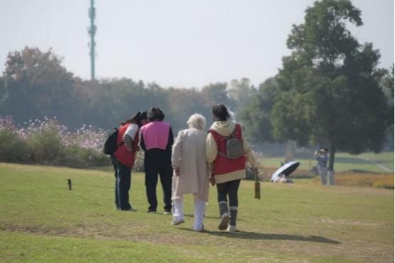 离退休工作处的工作人员与志愿者始终伴在左右,遇到步道稍不平处,轻轻扶稳胳膊,察觉有人脚步放缓,便主动提议“咱们在这边长椅歇一歇”,把细致照料融入每一个细节里。老同志们说:“组织这么好的活动,照顾得这么周到,咱们退休了还能感受到学校的暖心,真是太幸福了!”