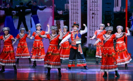 比赛中,老年协会武术队15位队员身着靓丽的民族服饰,精神抖擞步入赛场,展示了将民族体育运动元素与健身韵律巧妙融合的《中华猜猜操》,队员们动作整齐划一、舒展有力,既展现了中老年人昂扬向上的精神风貌,又彰显了独特的民族文化魅力,赢得现场观众阵阵掌声,获得评委及主办方领导的一致好评!