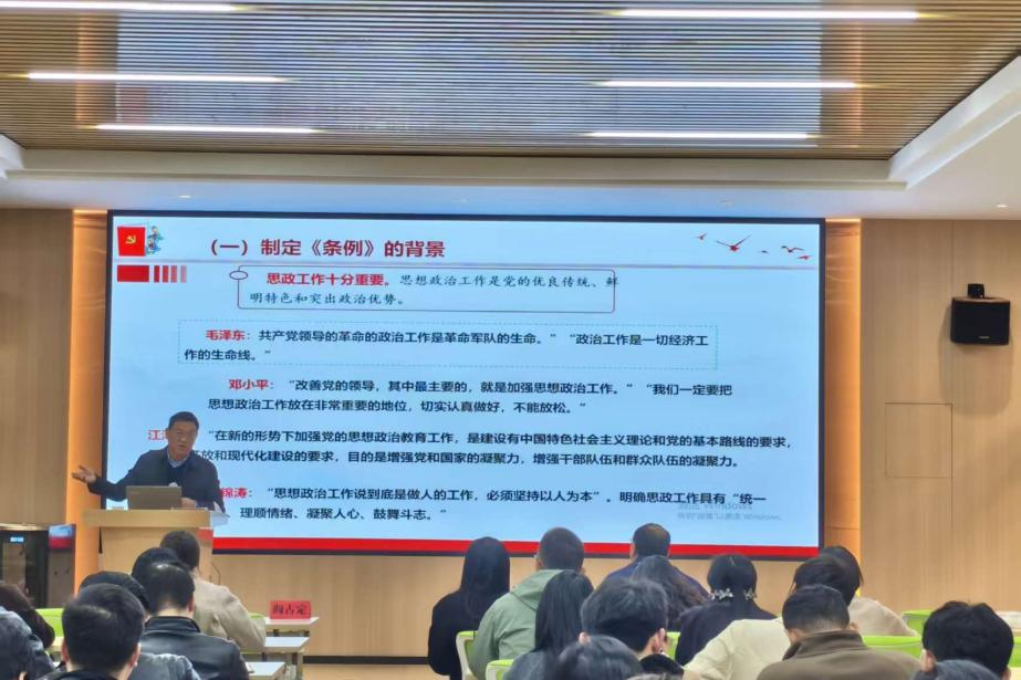 11月11日,由党委学生工作部主办,我院、民社学院、音舞学院共同承办的2025年第9期辅导员“思享汇”活动在“一站式”学生社区荷香会客厅举行。阎占定教授应邀作专题讲座,系统解读了《中国共产党思想政治工作条例》的核心要义,系统梳理了九大思政任务,辨析了“宣传思想工作”与“思想政治工作”的定位差异,并结合实际提出贯彻落实建议。他提出,辅导员要把握“思想引领者、成长陪伴者”角色定位,关注学生群体,把握学生特点,了解学生需求,与时俱进创新方式方法,实现用心用情用力立德树人。