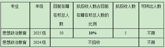 1.允许马克思主义学院思想政治教育专业2024级、2025级本科生申请转出,且比例不设上限。