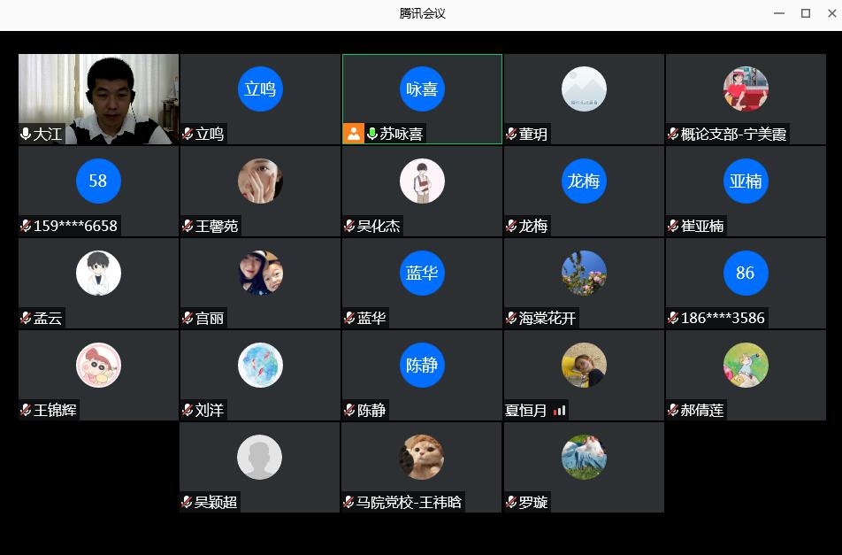 为了迎接建党99周年,6月29日上午,概论党支部召开线上组织生活会,支部书记苏咏喜主持会议并讲授专题党课,学院党委书记魏大江以及概论支部党员、预备党员、发展对象、积极分子等31人参加会议。