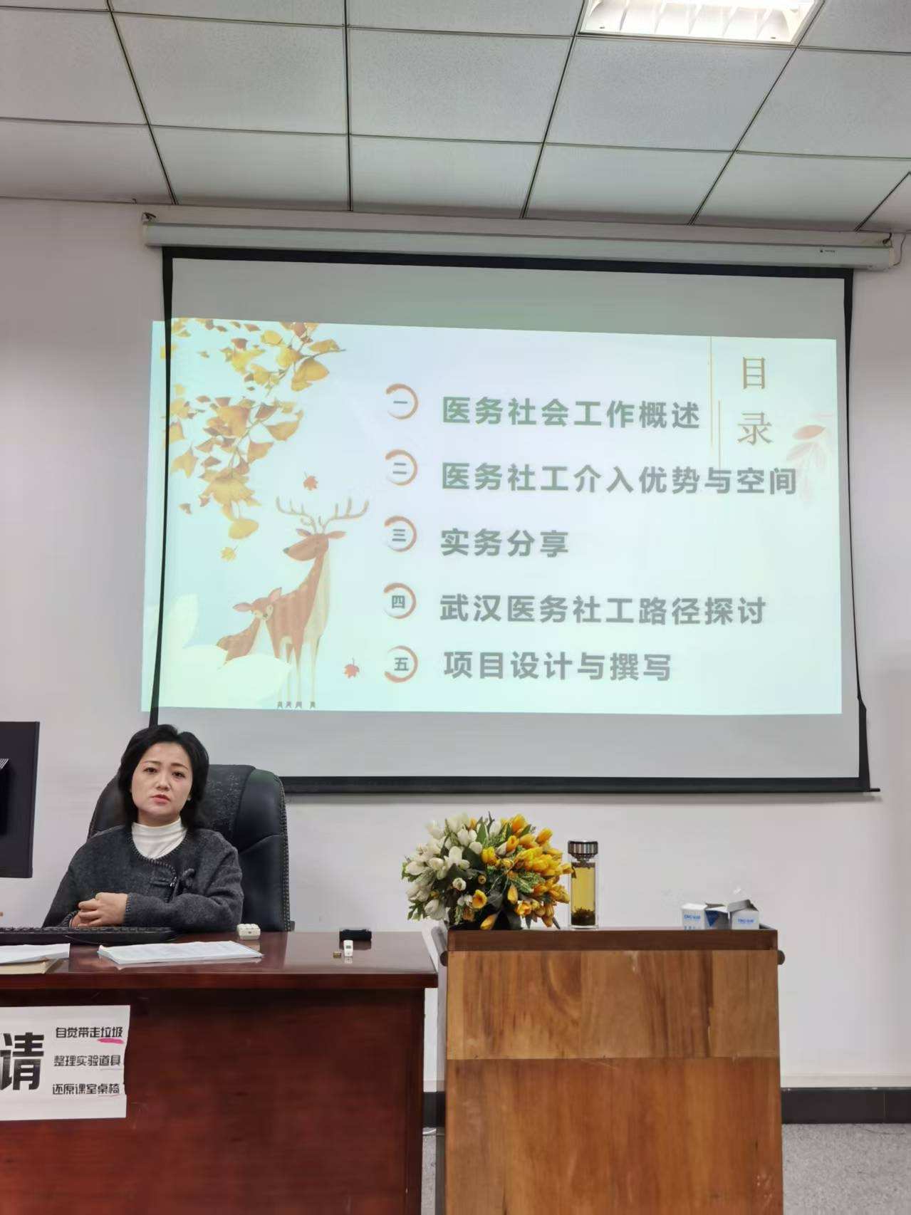 10月29日,湖北省中西医结合医院医务社工部负责人、中级社会工作师马乐应邀来到我院,以“医务社会工作本土化经验分享——以武汉市为例”为主题,为在场师生带来了一场扎根实务、贯通医社的专业讲座。她结合自身12年医务社工实务、督导与管理经验,系统梳理了医务社工在医疗场景中的角色定位、服务模式与发展路径,呈现了社会工作在卫生健康领域的专业力量与实践温度。