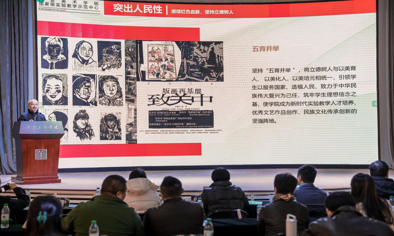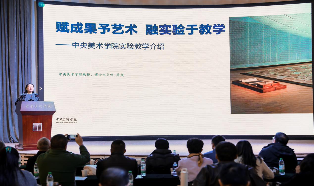 西安美术学院院长朱尽晖在致辞中表示,艺术学科必须加强应用型转变,与社会、行业紧密沟通,服务于国家文化战略,通过打造“实验+育人”深度融合模式,加快建设“AI+艺术”等前沿项目,推动课程内容与社会资源有机衔接,促进跨院校交流互鉴与资源共享,共同为文化强国建设汇聚力量。