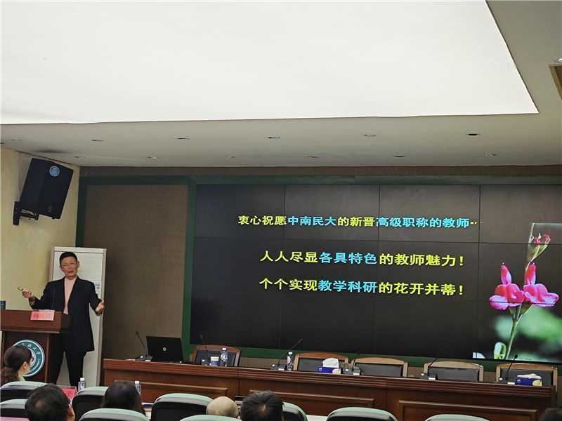 李红燕代表学校向今年新晋高级职称的老师表示祝贺,向大家长期以来的辛勤付出和为学校事业发展做出的积极贡献表示感谢。她说,当前,学校正处于加快学科调整和转型升级的关键时期,迫切需要大家积极为学校高质量发展、为铸牢中华民族共同体意识建设工作献策出力,当好表率,做好示范。她对新晋升高级职称教师提出了几点期望。一是恪守师者本分,努力涵养高尚师德,做政治过硬、品格高尚、行为坦荡的“大先生”。二是坚守育人初心,努力淬炼教学本领,进一步练就过硬的教学本领和精湛的教学艺术,全面提升教育教学质量。三是保持学术精进,努力提升科研水平,把科学研究与课堂教学、人才培养、社会服务等结合起来,用创新成果提升人才培养质量、支撑高水平大学建设。