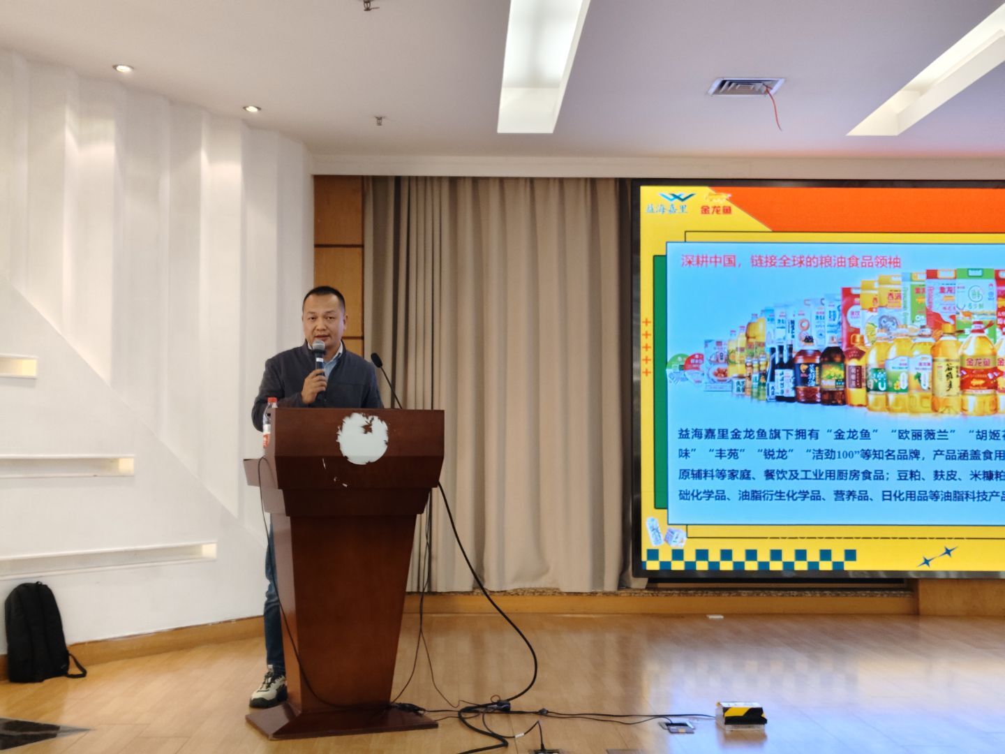 益海嘉里武汉分公司餐饮渠道营销高级经理梁博则聚焦餐饮领域,指出餐饮市场潜力巨大,涵盖社会餐饮、校园及企业食堂等范围;益海嘉里作为“餐饮厨房供应链服务商”,为海底捞等客户提供超70%的食材品类供应,同时提供定制化产品与食品安全服务。