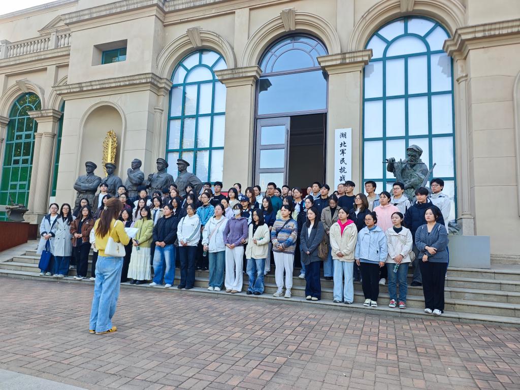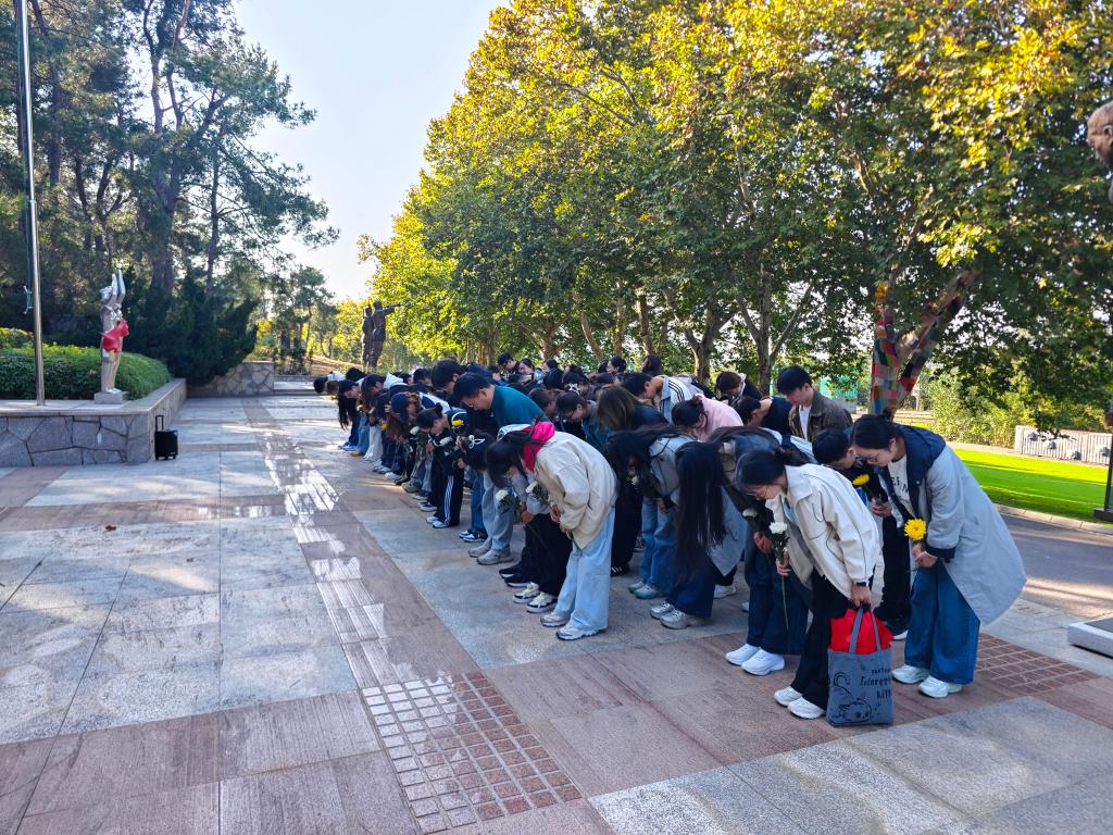 全体学员前往武汉抗战纪念碑处,开展献花致敬活动。大家手持菊花,依次走到纪念碑前,轻轻放下花束,向在抗日战争中英勇牺牲的革命先烈鞠躬致意,用最朴素的方式表达缅怀之情,时刻提醒着学员们“不忘历史、珍爱和平”的初心。
