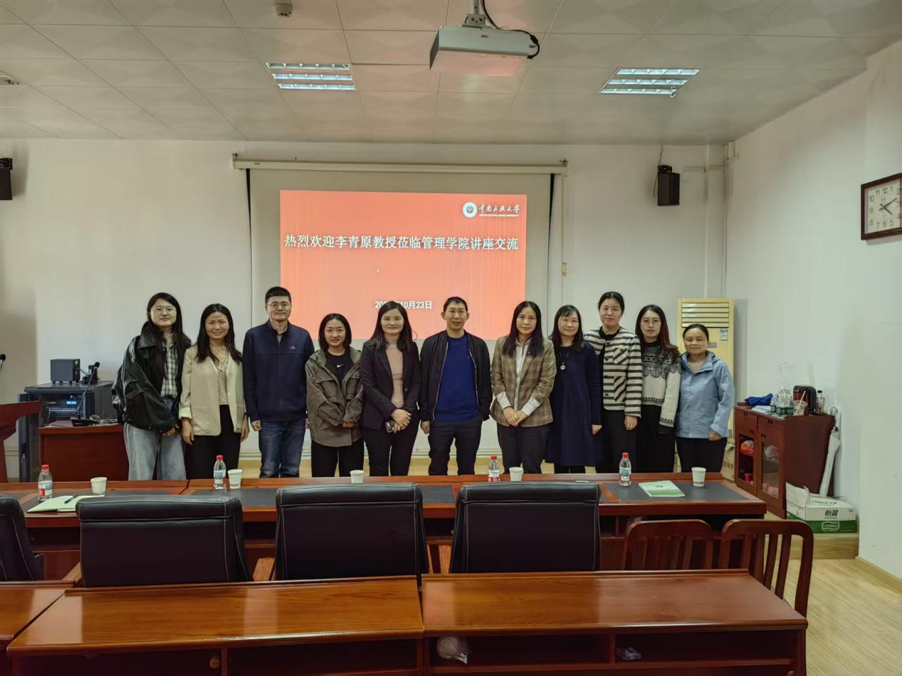 2025年10月23日,我院“新文科・新管理・新融合”系列学术讲座第二十二期在管理学院 506 会议室成功举办。本期讲座特邀武汉大学经济与管理学院李青原教授来校开展《财务会计研究交叉创新的思考》的专题分享。讲座由管理学院院长翟华云教授主持,学院教师、研究生积极参与,现场学术氛围浓厚。