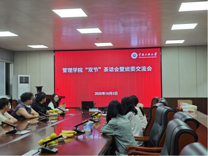 10月3日,管理学院2024级在206会议室举办了“双节”茶话会暨班委交流会。管理学院2024级辅导员侯奉嘉与2024级学子欢聚一堂,在瓜果清甜、笑语盈盈的轻松氛围中,共叙家国情怀,共话个人成长,共谋班级发展。会上,侯奉嘉围绕学校、学院和年级近期重点工作展开细致讲解;与会同学也积极发言,进行自我介绍,对学院和年级工作提出建议。