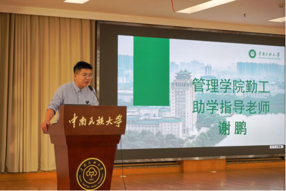 (学院勤工助学指导老师谢鹏发言 沈悦铭摄)