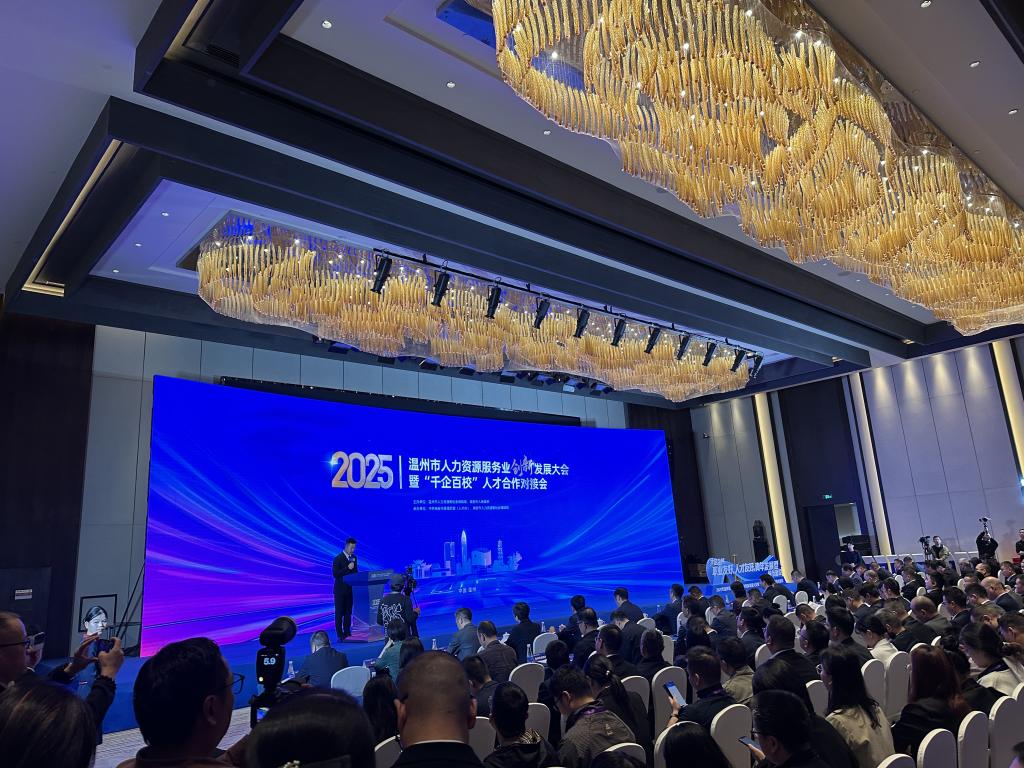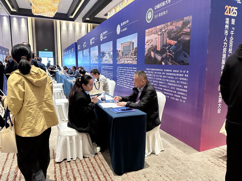 5日上午,2025温州市人力资源服务业创新发展大会暨“千企百校”人才合作对接会在瑞安举行,吸引了国内千余家行业领先企业、超百所国内外院校及十余家优质人力资源服务机构来温参会。对接会后,精心布置展位,积极宣传学校基本情况、学科特色及优势专业等,并向企业推荐优秀毕业生。与浙江雅虎汽车、浙江华信职能制造有限公司、报喜鸟等多家企业就校园招聘事宜进行了洽谈,不少企业表达了进一步加强联系、到校选聘人才的期望。下午,闻亮一行参观走访了中国基因药谷和温州国际云软件谷。在中国基因药谷、温州国际云软件谷详细了解了公司概况、主营业务、人才需求等方面。