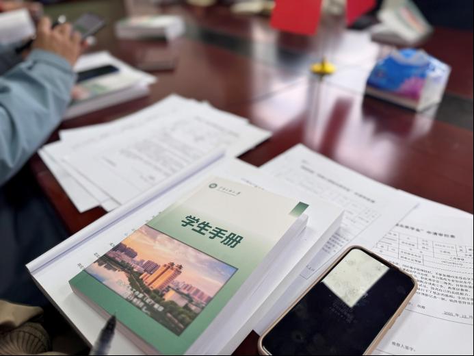 会上,李明亮副书记带领全体人员研读2025年新版《学生手册》,围绕学籍管理、奖惩制度、资助政策、心理健康教育及校园安全规定等重点修订内容展开专题辅导。李明亮强调,全体学工人员要切实做到“三个到位”:一是思想认识到位,深刻领会手册修订的重要意义,将依规治校理念贯穿学生工作始终;二是学习领会到位,精准把握条款细则,杜绝“一知半解、似是而非”;三是执行落实到位,在评奖评优、违纪处理、日常管理等环节严格对标、规范操作,确保制度刚性执行。