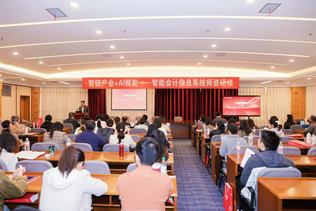 10月23日,由我院联合民族院校会计学专业虚拟教研室、新道科技股份有限公司湖北分公司承办的“智链产业+AI赋能——智能会计信息系统师资研修”在我校顺利举行,来自湖北省内25所高等院校,共计80余名骨干教师参加了此次研修。本次研修聚焦AI普及时代下智能会计教育的创新与变革,旨在通过产教深度融合推动财会专业数智化师资队伍建设,为产业升级培养高素质应用型人才。研修由翟华云院长和新道湖北科技分公司服务总监熊福龙主持。