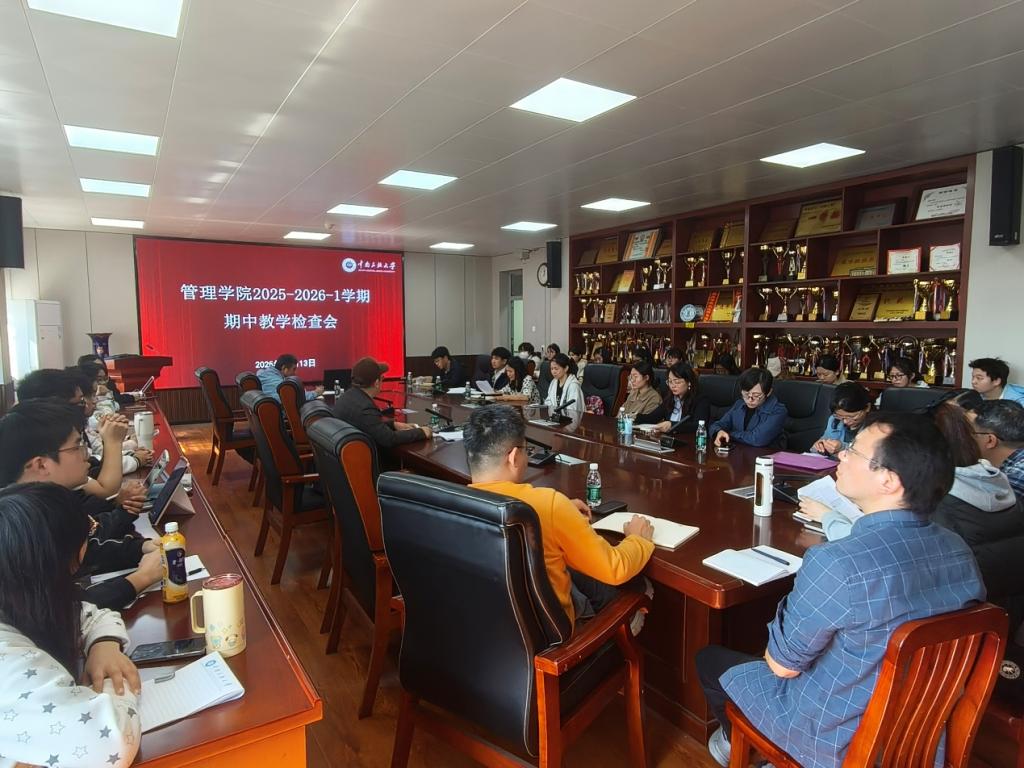 为全面把握学院本科教学工作的实际运行情况,及时排查并解决教学环节中出现的各类问题,持续加强教学过程的规范化与精细化管理,有效促进优良教风与学风的形成,从而切实提升日常教育教学质量,我院于2025年11月13日在管理学院206会议室召开了2025-2026学年第一学期期中教学检查师生座谈会。此次座谈会由副院长赵晓飞主持,校级与院级教学督导、各系主任、副主任共同参与了会议,同时广泛听取了来自各年级、各专业的学生代表所提出的意见与建议。会议旨在通过面对面的深入交流,全面收集师生们在教、学、管等各方面的真实反馈。讨论内容广泛涉及教师的教学态度、教学方法与效果、课堂组织、辅导答疑、作业批改、考核方式,以及学生的学习体验、学风建设、教学管理服务水平等多个维度。与会师生代表畅所欲言,为学院教学质量的持续改进建言献策。
