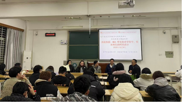 2025年12月6日晚,一场主题为“MBA学长求学路分享”的职场精英引领座谈会在电子商务专业举行。来自企业、政府等不同领域的四位职场精英,以自身的艰辛求学经历,为在校本科生上了一堂深刻而震撼的“珍惜当下”课。