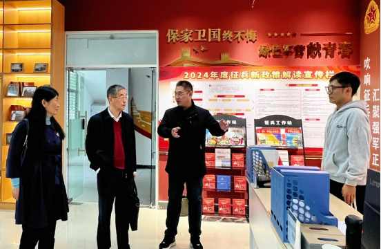 刘义、李红燕参观“一站式”学生社区总站中的征兵工作站 金星摄