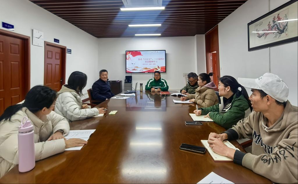 2025年11月27日上午,体育学院健康管理中心党支部在17-505会议室开展“深入学习贯彻党的二十届四中全会精神,以高质量发展谱写中国式现代化新篇章”主题党日活动,支部全体党员共9人参加,活动由支部书记龚群主持。首先,学院党委书记洪盛志以《奋进“十五五”:党的二十届四中全会精神学习》为题,给大家上了一次党课。