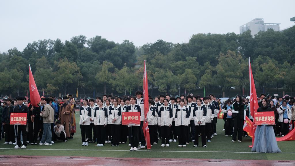 10月30日上午8点15分,运动会在激昂的运动员进行曲中拉开帷幕。国旗仪仗队护送五星红旗率先入场,各单位代表队紧随其后,迈着整齐的步伐依次通过主席台。升旗仪式后,校党委副书记、副校长、学校体育运动委员会主任宋发军致开幕词。他向全体运动员和辛勤筹备的广大师生们致以问候。他指出,体育不仅是强身健体的有效方式,更是铸牢中华民族共同体意识的重要载体。他寄语师生在校运会上弘扬体育道德风尚,做到胜不骄、败不馁,赛出风格、赛出水平。裁判员代表桂裕龙、运动员代表付焘玮分别代表裁判员、运动员宣誓,校党委书记徐业勤宣布学校第四十届运动会开幕。