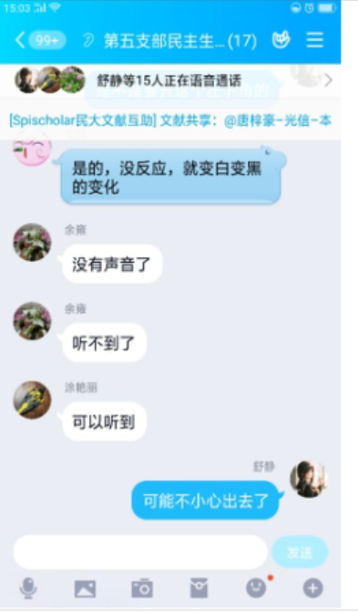 3月26日下午2点30分,外语学院教工第五支部15位党员同志们准时在QQ群以语音会议的形式进行了远程实时主题党日活动(曾素英同志因侄子骨折,送孩子看医生,请假)。党员同志们通过网络平台和学习强国APP认真学习了习近平总书记在抗疫期间的5次讲话和1次回信后,十几位同志在讨论会上踊跃发言,会后撰写书面学习体会。