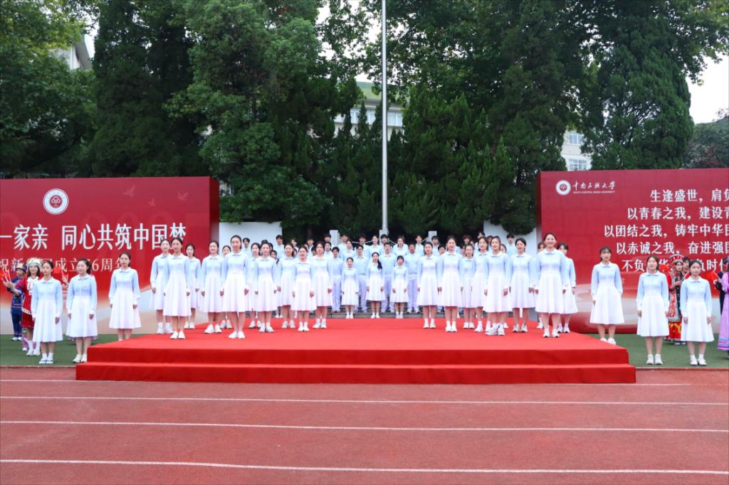10月1日清晨,学校举行“中华民族一家亲,同心共筑中国梦”庆祝中华人民共和国成立76周年升旗仪式。校领导徐业勤、刘义、李红燕,校党委常委、统战部部长蔡琼,相关职能部门及学院负责人,2000余名师生代表齐聚南湖体育场,共庆伟大祖国76周年华诞。