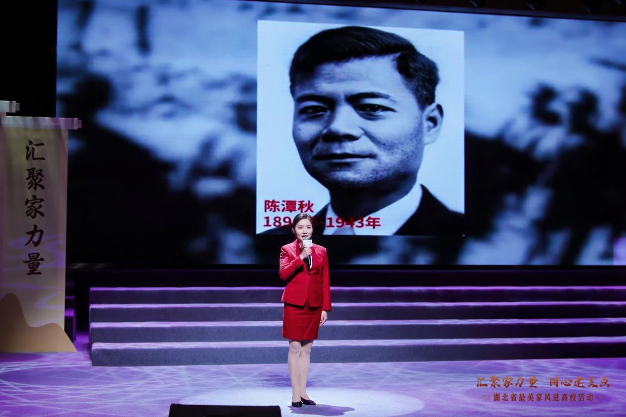 活动现场,饱含深情的家风宣讲,让在场师生深受触动。我校学子的红色家书诵读,带领观众感受力透纸背的信仰、重温革命岁月里的家国担当;黄冈市巾帼宣讲员曾婷讲述的中共一大代表陈潭秋烈士与长子陈鹄跨越时空的家书故事,家书纸短、家国情长,诠释了红色家风的精神传承;“共和国勋章”获得者黄旭华院士的女儿——武汉广播电视台编导黄峻女士,深情追忆父亲“隐姓埋名三十载,许身报国铸重器”的家国情怀;中国地质大学(武汉)教授陈刚分享了父子携手攀登珠峰、将“坚韧不拔、永不言弃”的家风传递下去、将沉甸甸的测绘钻研精神化为日常家风家教的点滴感人故事;华中科技大学同济医学院附属协和医院教授朱良如,讲述了医学世家三代人传承“医者仁心”“大医精诚”的最美家风故事;我校石榴籽志愿服务队则分享了13年来168名志愿者扎根西部、服务基层的青春实践,展现了新时代青年将个人梦融入家国梦,积极投身国家高质量发展洪流的使命与担当。