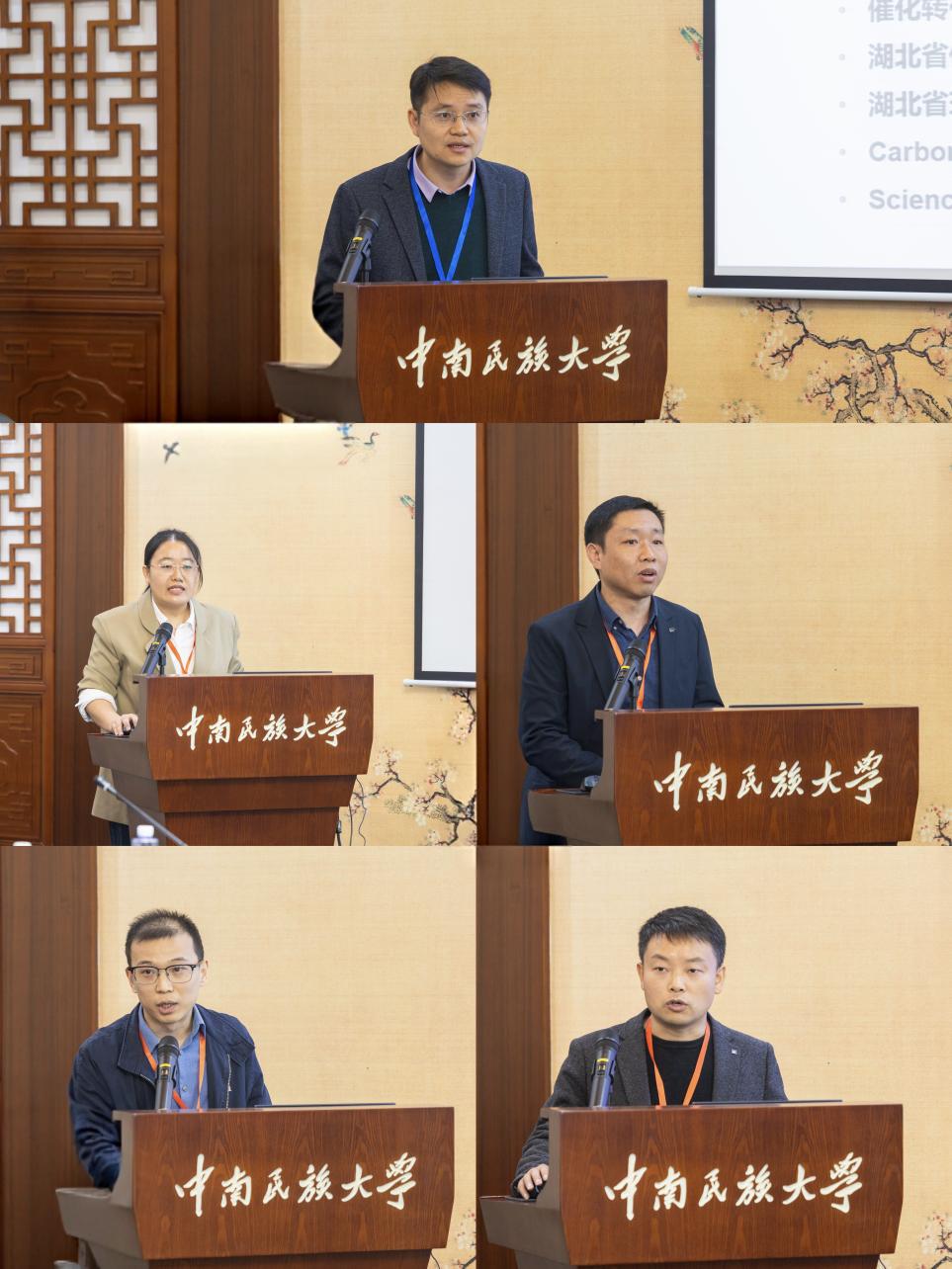 在学术报告环节,我校化学与材料科学学院张泽会、张梅琦、胡小强、姜宇、秦四勇5位优秀青年教师,聚焦化学与材料科学前沿分别就各自研究方向作了专题汇报。随后进行的青年教师基金申报汇报中,胡冶州、张曙枫、成凯、李雄杰4位新入职教师依次介绍了各自的基金课题设想与研究计划。