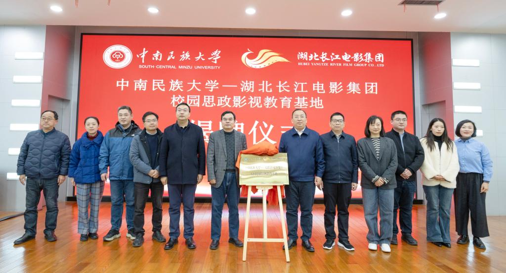 11月18日下午,我校与湖北长江电影集团在学术交流中心举行校企共建校园思政影视教育基地签约揭牌仪式。湖北长江电影集团党委书记、董事长朱雨龙,湖北长江电影集团党委副书记、总经理谢云以及湖北银兴院线相关负责人,我校党委书记徐业勤,党委常委、副校长马玉堂,相关职能部门负责人和师生代表共同出席仪式。仪式由马玉堂主持。
