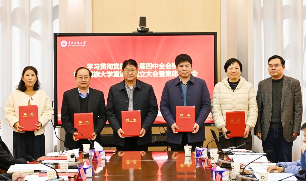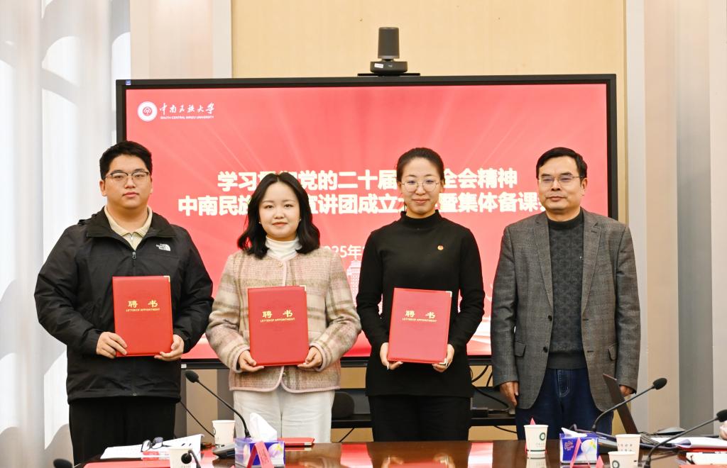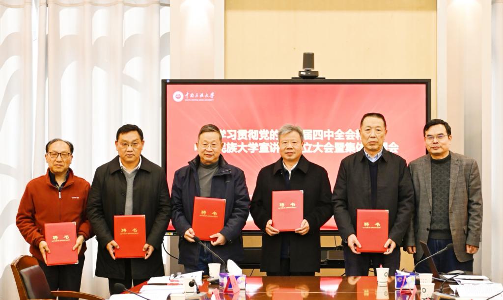 会上,马玉堂传达学习了国家民委党组、湖北省委关于学习贯彻党的二十届四中全会精神的相关文件精神,宣读了学校宣讲团、“银龄”宣讲团、青年学生宣讲团成员名单。徐业勤为学习贯彻党的二十届四中全会精神环球360管理网宣讲团成员颁发聘书。