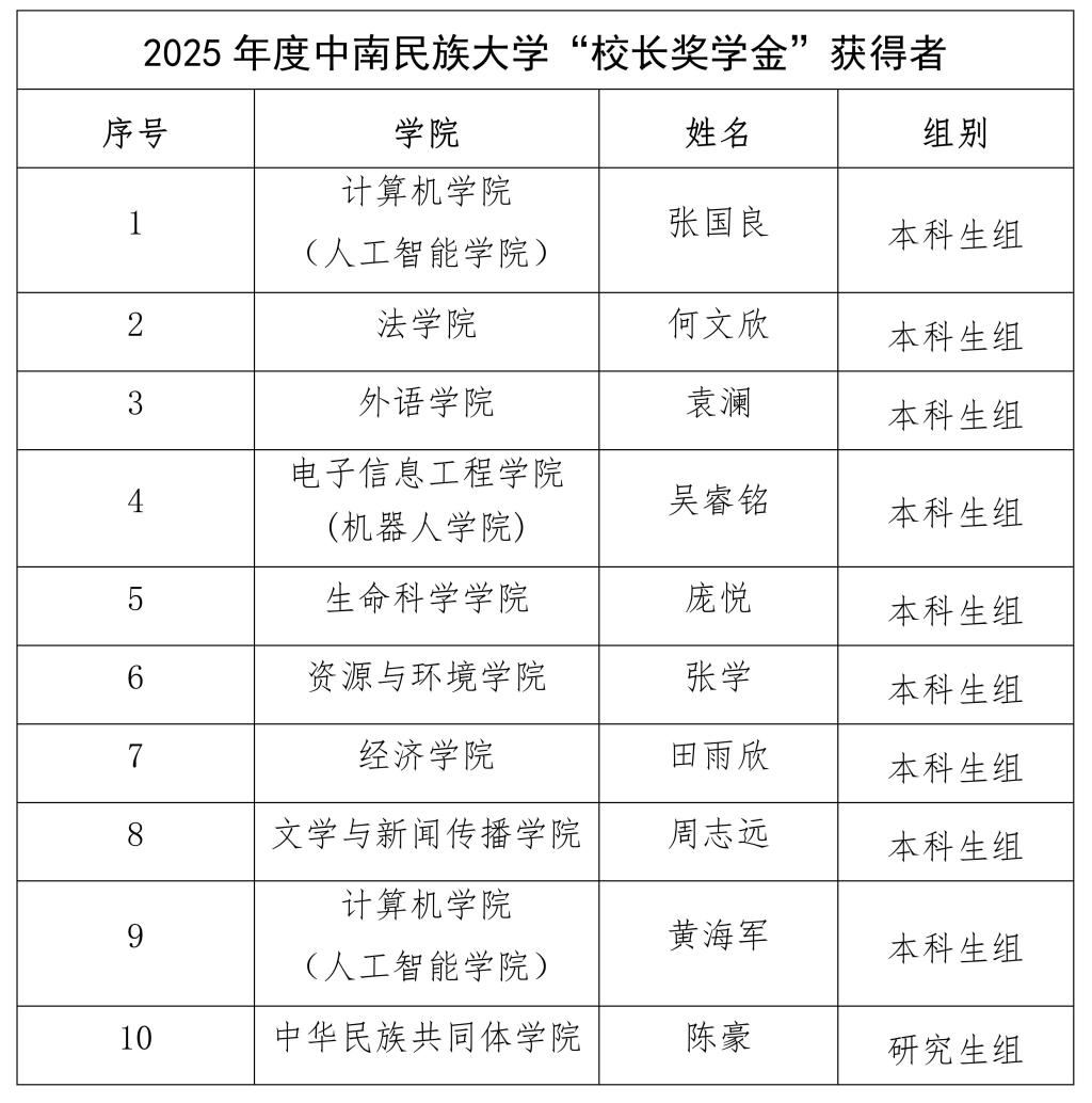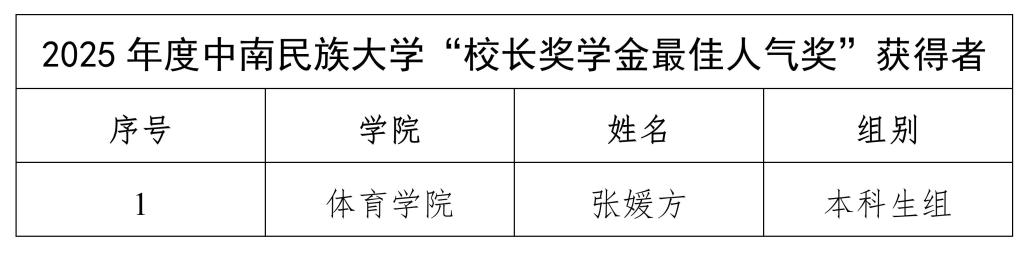 综合网络投票和现场得分,2025年度校长奖学金获奖情况如下: