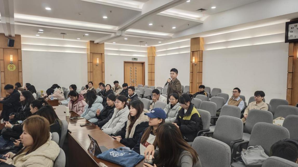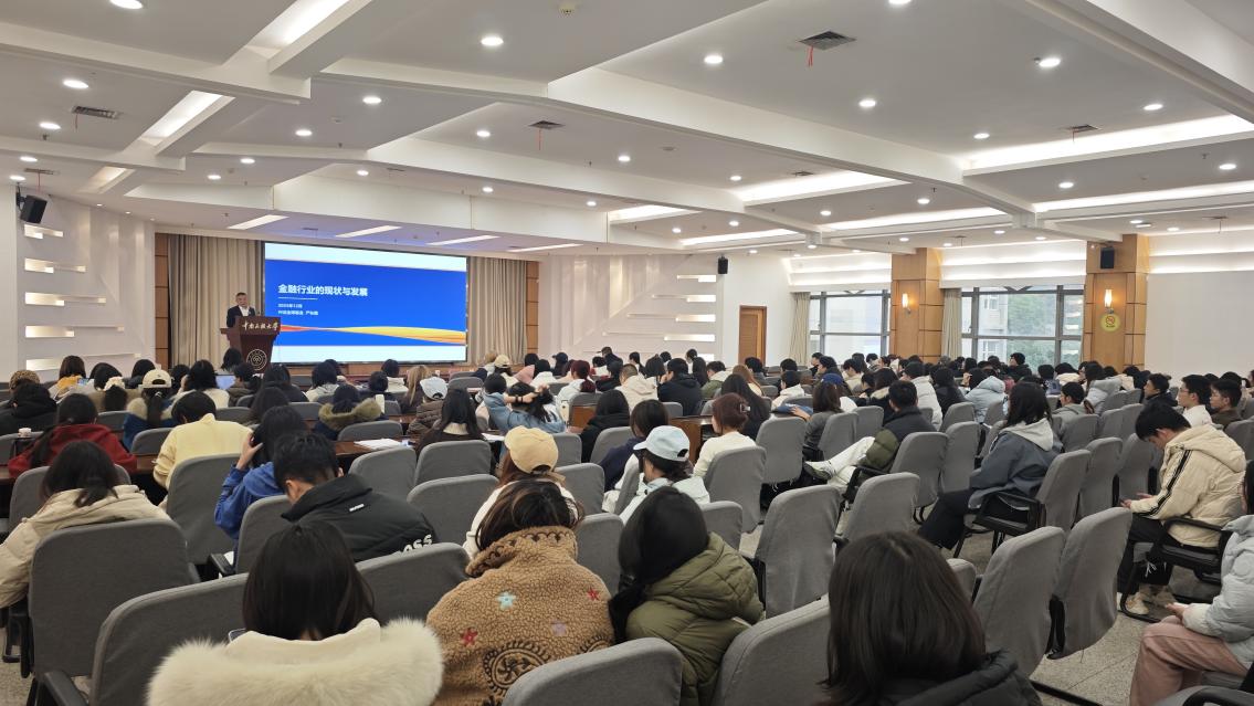 讲座中,严长胜校友以《金融行业的现状及发展》为题,结合自身丰富行业履历,带来兼具专业性与实用性的深度分享。他系统解析了银行、保险、券商、资管四大核心板块功能定位,重点聚焦证券行业五大业务类型及轻重资本业务盈利模式差异,深入解读“资管新规”实施后资管行业向净值化、标准化转型的趋势,并通过最新数据展示公募基金行业规模及各类基金占比情况。同时,他结合自身从华泰证券到兴全基金的职业成长路径,分享金融行业核心竞争力要求,强调专业积淀、风险意识与长期思维的重要性,并详细介绍了公募基金行业投研、市场、运营等精细化岗位的职责定位,为有意向进入金融行业的学生提供了清晰的职业认知。他还分享了行业未来发展趋势,建议同学们面对未来职场,要坚定信心、选对方向、持续努力、打牢基础,不断提升自身的核心竞争力。