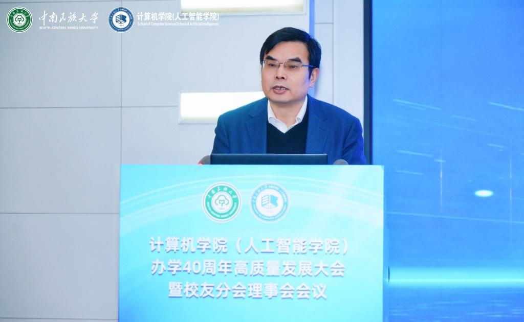 计算机学院(人工智能学院)院长帖军作学院发展报告。学院老教师代表宋中山教授满怀深情地分享了与学院共同成长的39载岁月。青年教师代表施朦博士围绕“回望、前行、同心”3个关键词,表达自己作为一名青年教师的感怀与期盼。