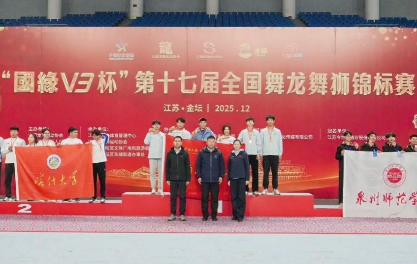 12月5日-10日,第十七届全国舞龙舞狮锦标赛在江苏常州举行。此次比赛由中国龙狮运动协会主办,来自全国22个省份的94支代表队近1400名选手参赛。我校龙狮队凭借过硬技术与默契协作在全国强队比拼中脱颖而出,一举斩获混合组北狮障碍冠军及4项第六名,10名队员达到国家一级运动员标准。