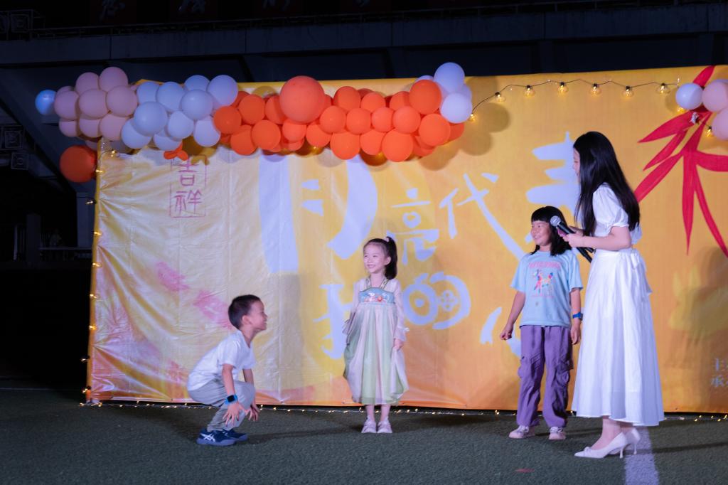穿插其间的互动环节妙趣横生:“飞花令”以文采飞扬展现学子底蕴,“萝卜蹲”以童真意趣引发阵阵欢笑,现场气氛热烈。晚会尾声,隐藏节目惊喜呈现——全场师生齐声合唱《当你》,歌声如潮,掌声雷动,将氛围推向高潮。“学校用心筹备的晚会让我倍感温暖,即使未能回家过节,也在这里感受到了家的温情。”电子信息工程学院(机器人学院)学生郭曜庆感慨道。这场中秋之约,不仅书写了跨越地域的“团圆”故事,更传递出民大对五湖四海学子的深切关怀。