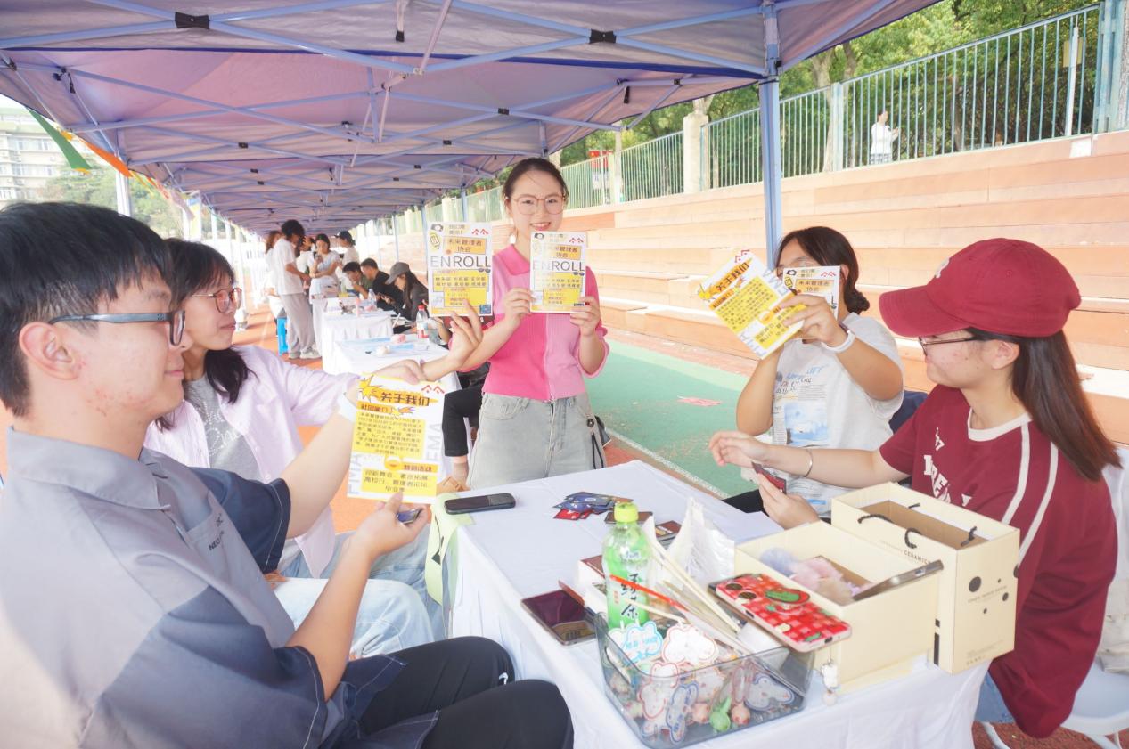 本次活动特别设置了社团自由行活动。同学们持贴纸收集手册,每参与一个社团互动即可获得一枚该社团的专属贴纸,集满12枚贴纸便可在社团指导中心展位处参与趣味套圈抽奖。抽奖区欢声笑语不断,将现场气氛一次次推向高潮。