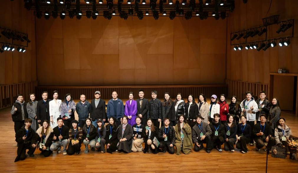 音乐舞蹈学院师生代表与两位歌唱家合影。学院供图