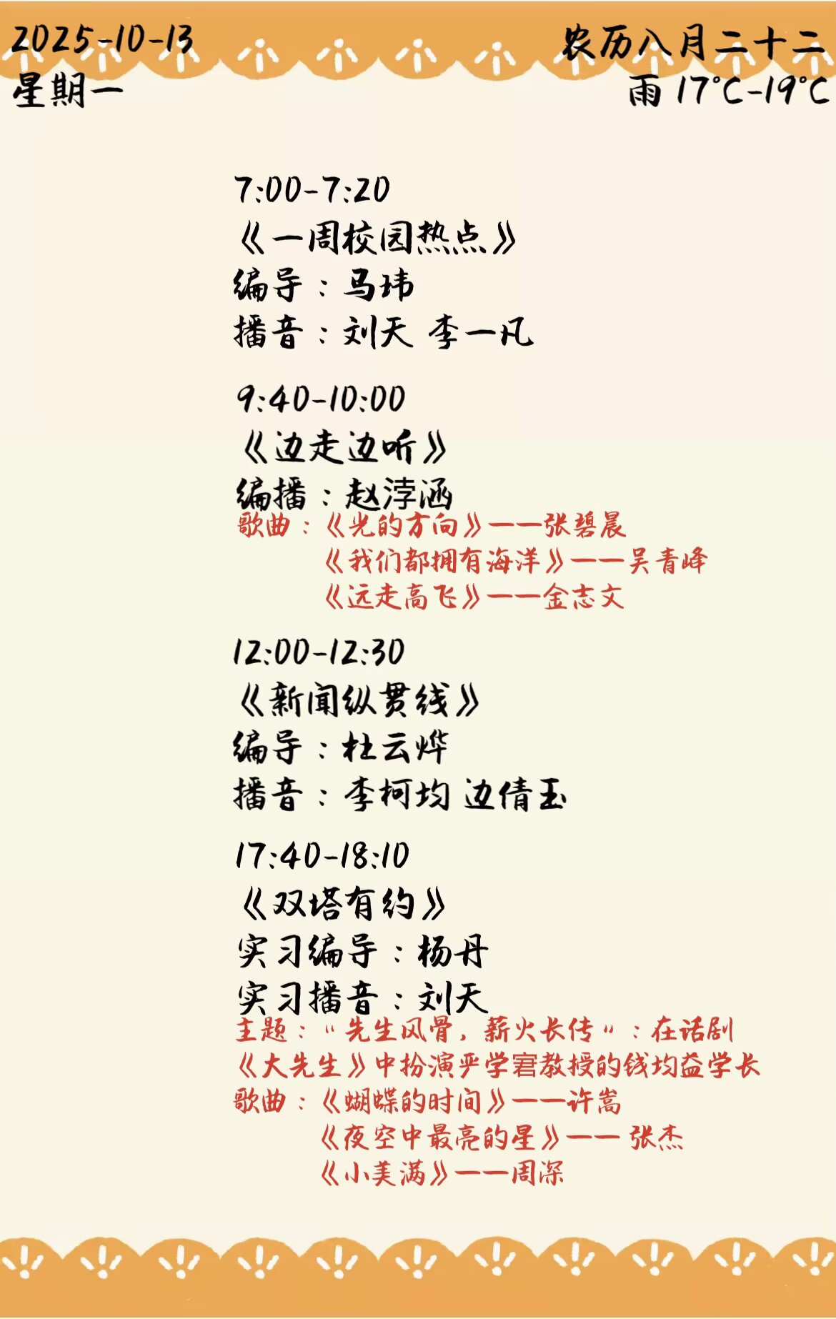 上一篇: 双塔之声2025年第二学期第7周节目单(2025.10.20-10.24)