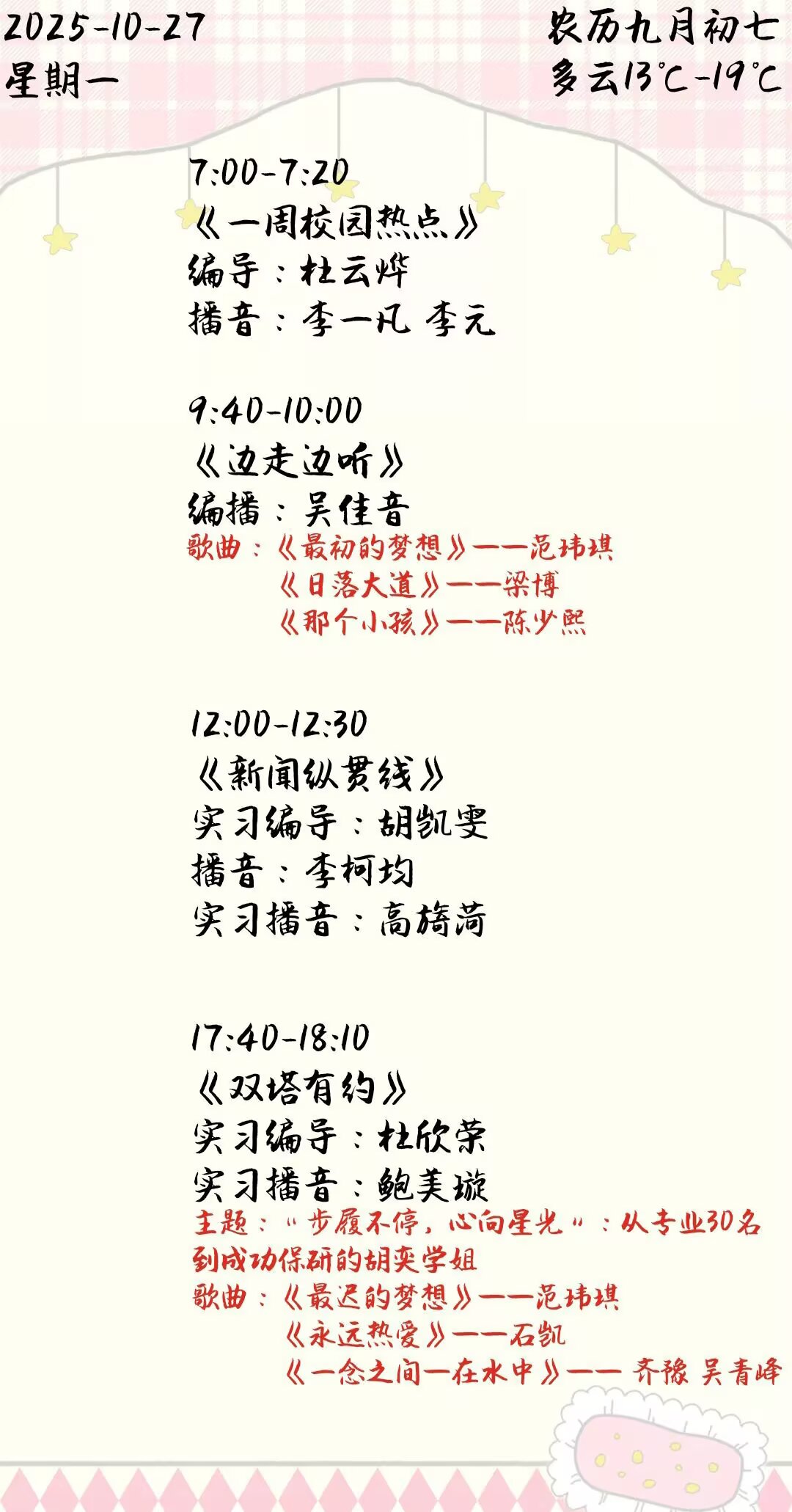 下一篇: 双塔之声2025年第二学期第7周节目单(2025.10.20-10.24)